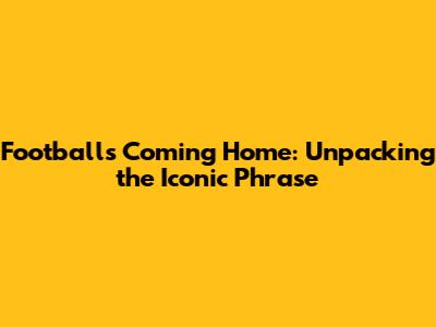 Football's Coming Home: Unpacking The Iconic Phrase